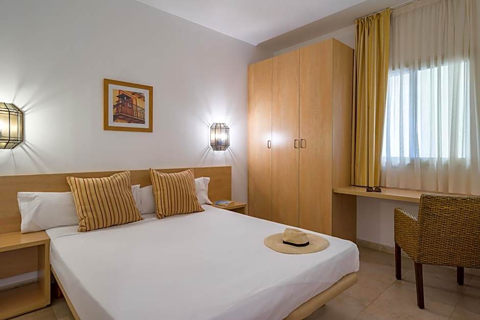 This air-conditioned apartment has a large furnished terrace, 1 double bedroom, a bathroom and a lounge with 2 sofa beds and international satellite TV. The kitchenette includes a hob, microwave and dishwasher. Safes and telephones are available at an extra cost. Views not guaranteed.