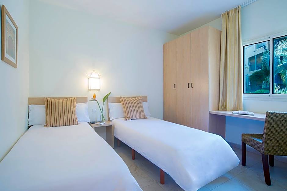 This air-conditioned apartment has a large furnished terrace, 2 double bedrooms, a twin bedroom and 2 sofa beds in the lounge. There are 2 bathrooms and a lounge with international satellite TV. The kitchenette includes a hob, microwave and dishwasher. Safes and telephones are available at an extra cost. Views not guaranteed.